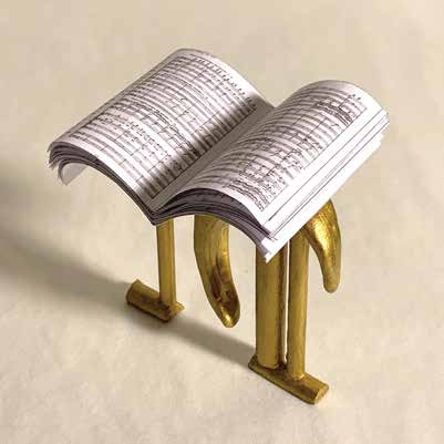 The 3D application took the form of the letter 'M' and made it into a miniature conductor podium. The printed music is from Beethoven's famous Symphony No. 9, since that has the Ode to Joy.